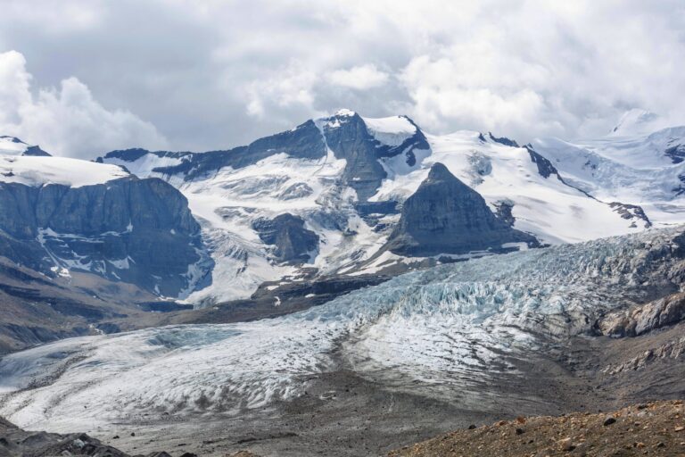 Stand in Awe at the Columbia Icefield – Witness the vastness of the Athabasca Glacier, one of the largest icefields in the Rockies, and feel the chill of its ancient ice beneath your feet.