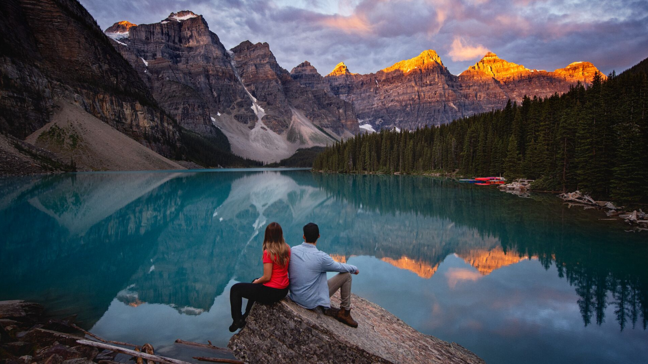 Sunrise at Moraine Lake, one of the most sought-after and unforgettable views in the Rockies