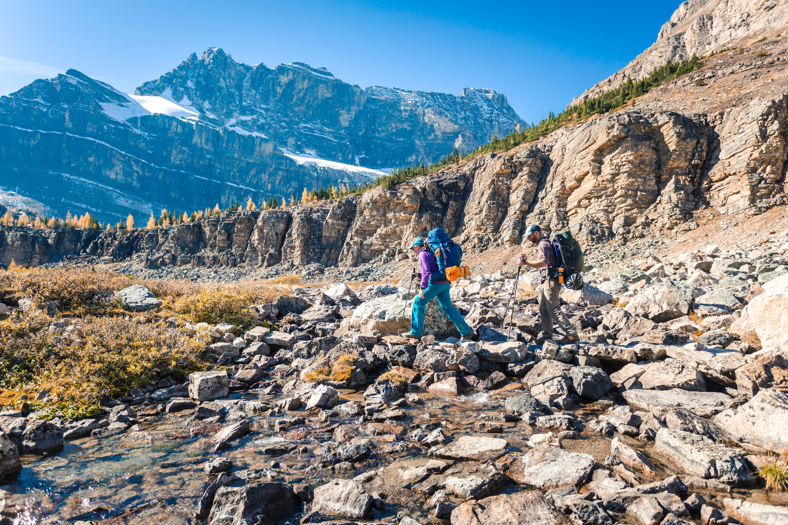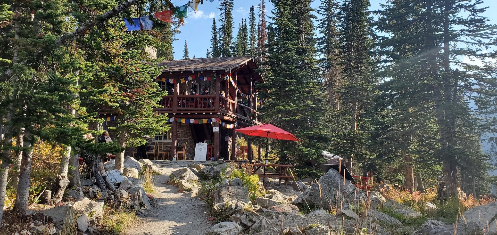 Hike to a backcountry tea house in the mountains overlooking Lake Louise, with sweeping glacier and lake vistas