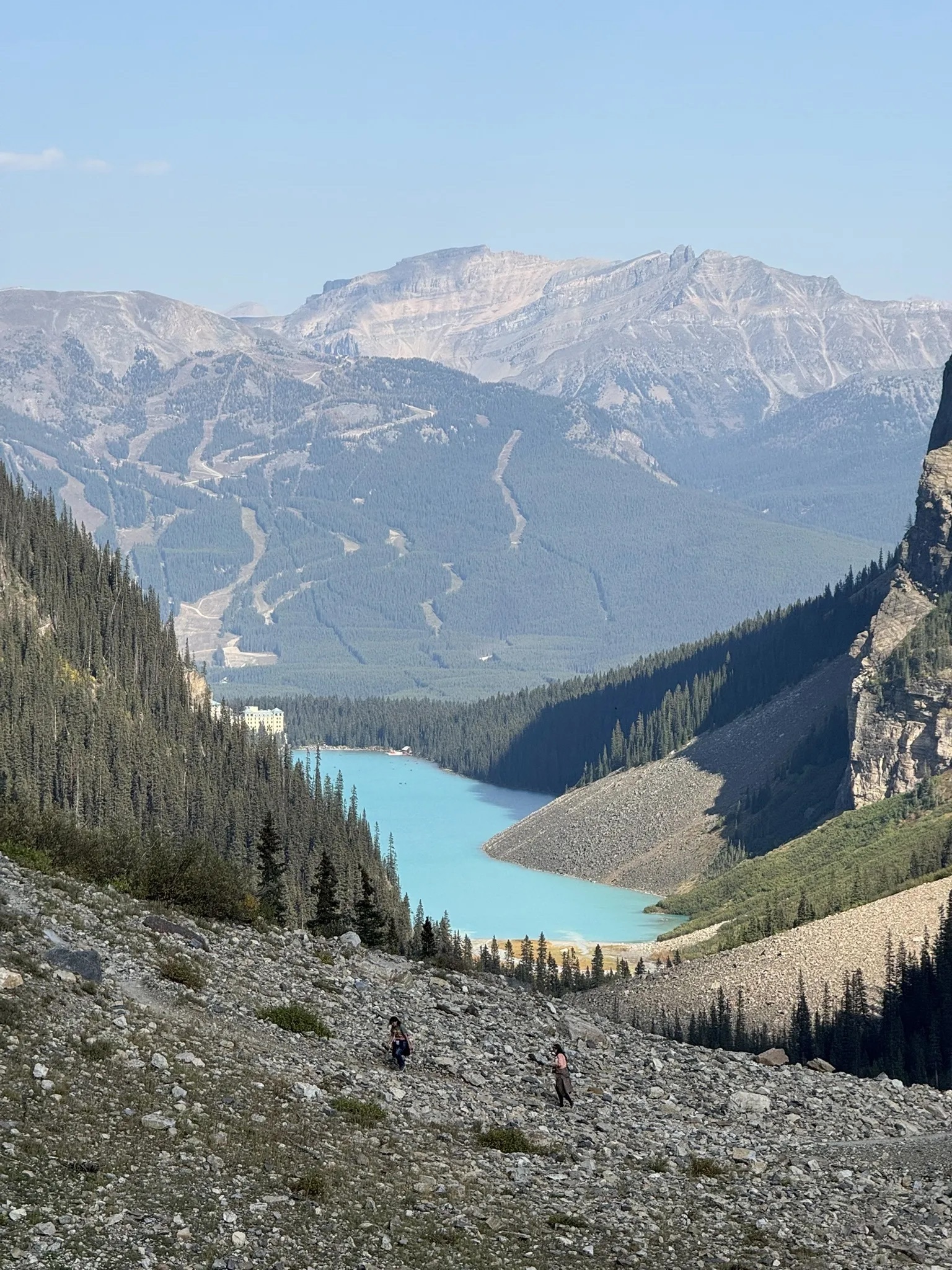 From here, we continue to Lake Louise and lace up for a rewarding alpine hike to the Plain of Six Glaciers (approximately 11km, 3 hours, 400 m elevation gain). The trail winds through forest and open slopes before opening up to sweeping views over the lake and surrounding glaciers. At the teahouse, take a well-earned pause with something warm in hand and time to soak it all in.