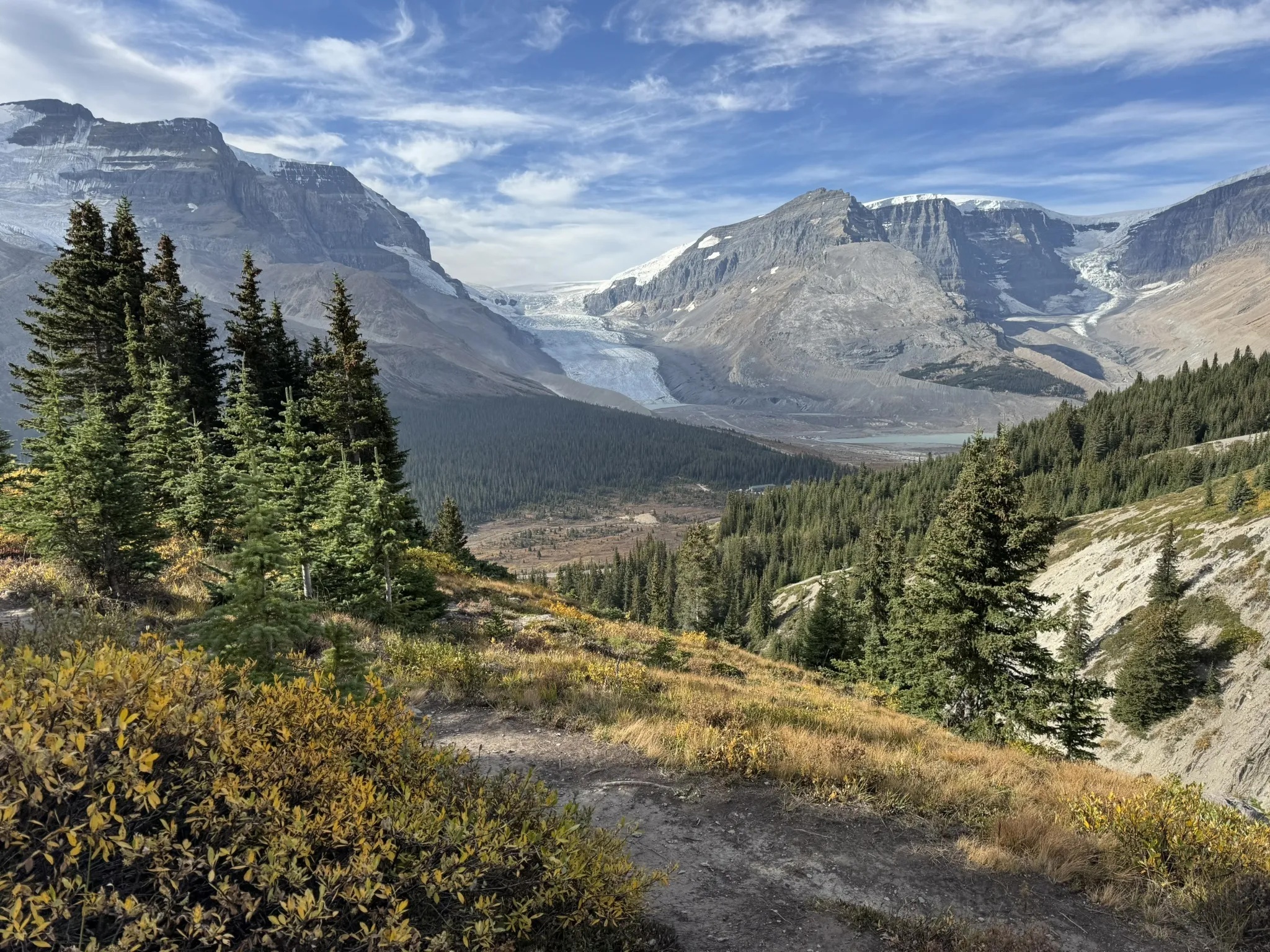 Hiking along the Icefields Parkway, with panoramic glacier views
